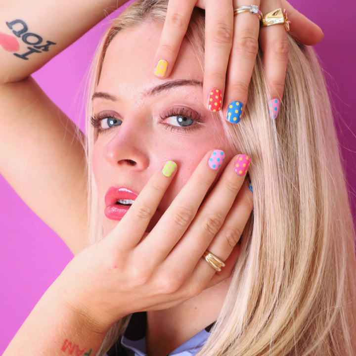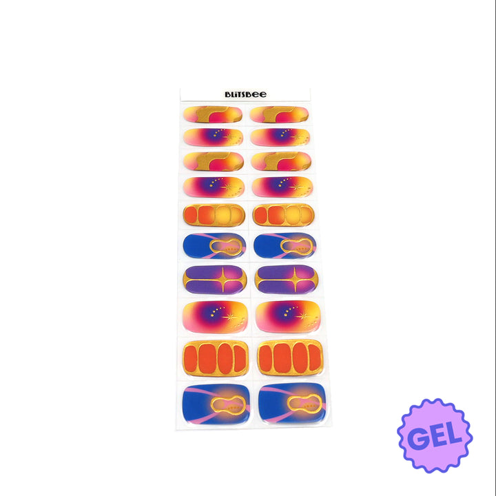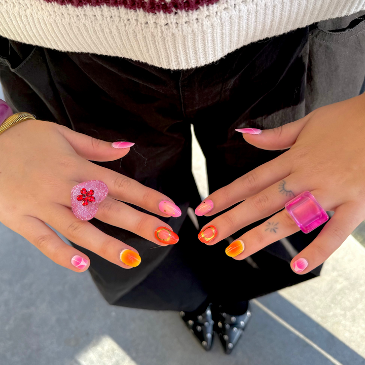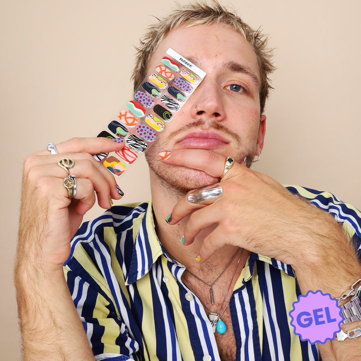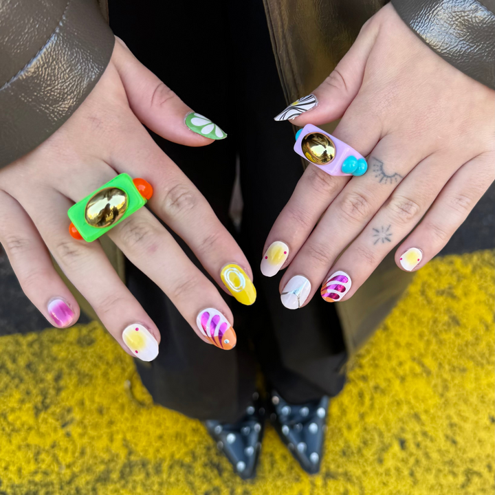 Ces autocollants pour ongles vibrants présentent des touches de couleur ludiques avec un élégant chrome argenté. Idéals pour toutes les occasions où vous souhaitez vous démarquer.