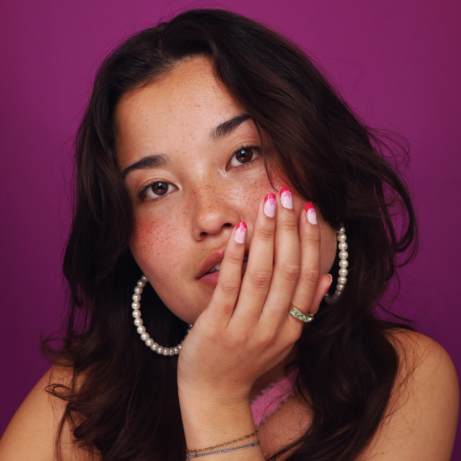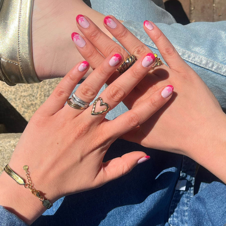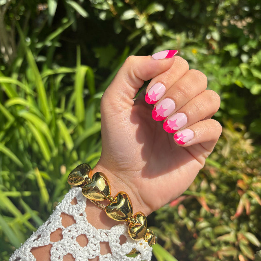 Blushing Stars pairs soft pink with a simple star detail for a subtle statement. Clean, cute, and effortlessly eye-catching.