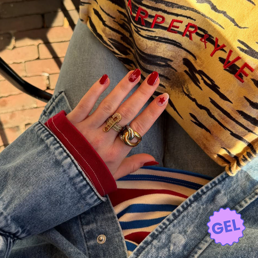 Make a bold statement with these red nails adorned with sparkling stars. Perfect for adding a touch of magic to your look, they’re as trendy as they are eye-catching.