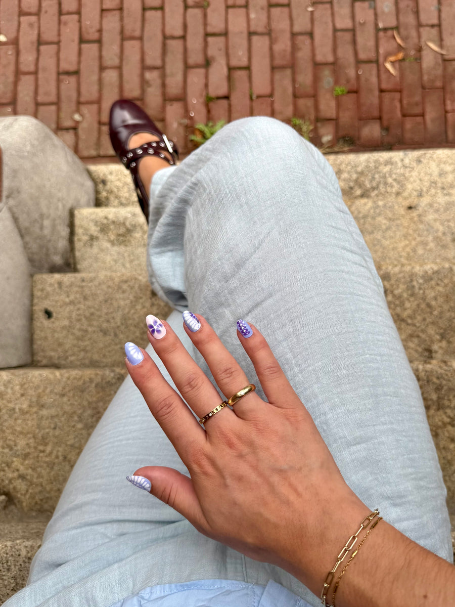 Twilight Bloom wraps your nails in soft purple shades and delicate flowers. Dreamy, calm and quietly bold. A floral moment made for magic hours.
